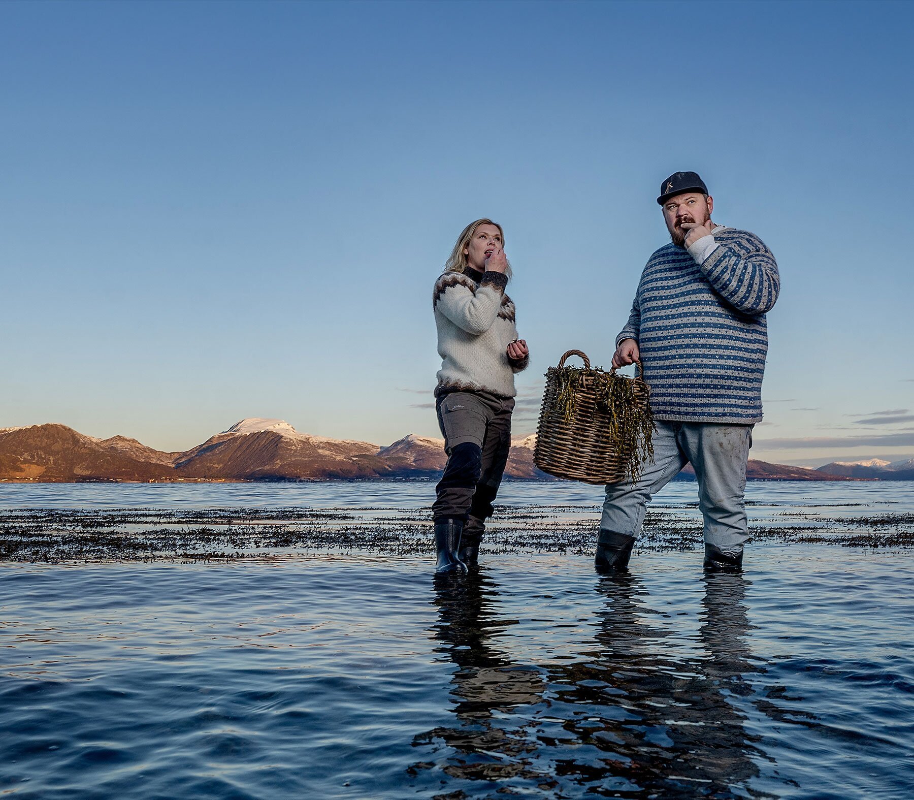 Avec leur entreprise, qui s’appuie à la fois sur une longue tradition japonaise d’utilisation des algues dans l’alimentation et sur les meilleurs produits de la mer au monde, les deux amies ont à cœur de faire connaître toute la variété des produits alimentaires que la mer nous propose. C’est pourquoi Angelita se trouve aujourd’hui sur les rochers en contrebas du Kvitnes Gård et récolte différentes espèces d’algues qui poussent dans les eaux bleues et glacées de la mer.